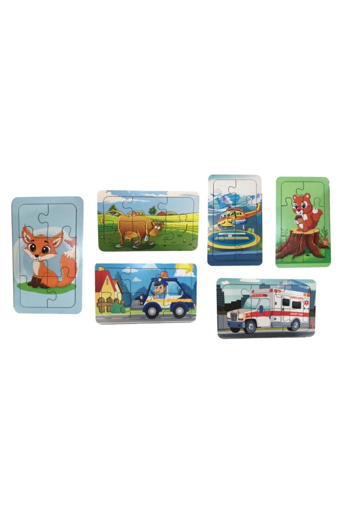 Ahşap Puzzle Ilk Yapbozum 6 Adet 6 Parçalı 18x11cm
