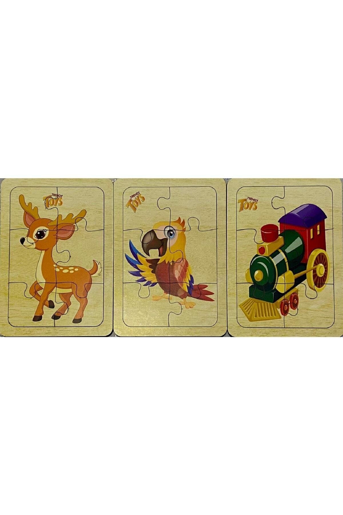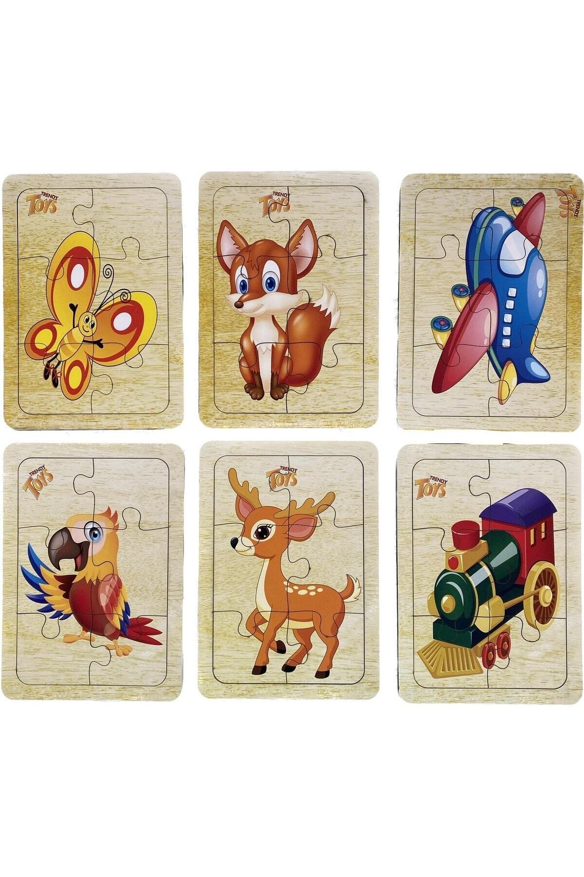 Ahşap Puzzle Ilk Yapbozum 6 Adet 6 Parçalı 18x11cm