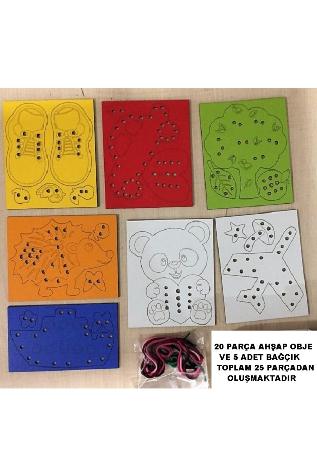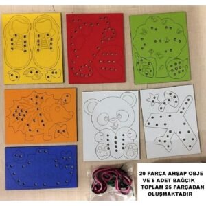 Eğitici Ahşap Renkli İp Geçirme Örgü Seti 20 Ahşap Parça 5 Adet Bağcık Toplam 25 Parça Montessori El Kası Geliştirme Seti Trendy Toys Ahşap Eğitici Oyun Setleri Çocukların Hangi Becerilerini Destekler · * Hayal gücü · * İnce; motor beceriler · * Dikkat ve Odaklanma · * Üretkenlik · * Parça Bütün ilişkisi kurma Ürün 1; sınıf mdf’den üretilmiş olup sağlığa zararlı herhangi bir kimyasal içermemektedir;